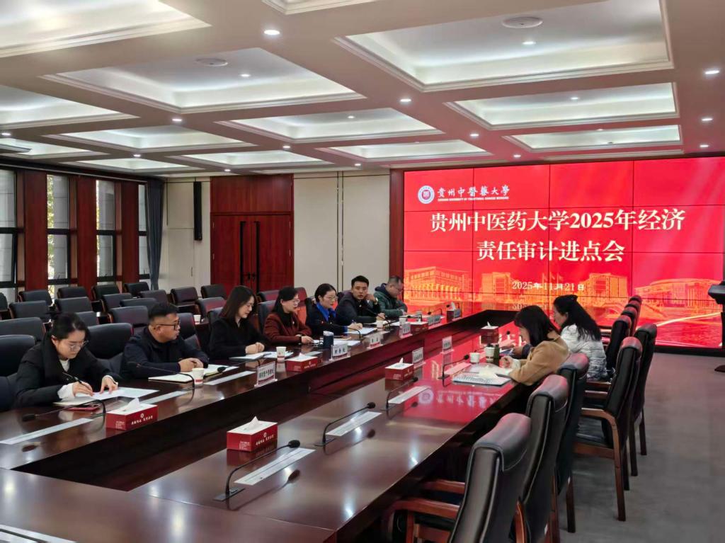 为强化内部管理、规范经济责任审计流程,明确审计任务清单与工作要求,切实保障审计工作有序高效推进,2025年11月21日,贵州中医药大学2025年经济责任审计进点会在学术交流中心113会议室召开。会议由审计处郑海燕同志主持,校长周英、党委组织部、纪委、人事处、财务处、国有资产管理处等相关职能部门负责人,审计组代表,以及被审计单位领导及相关工作人员参会。
